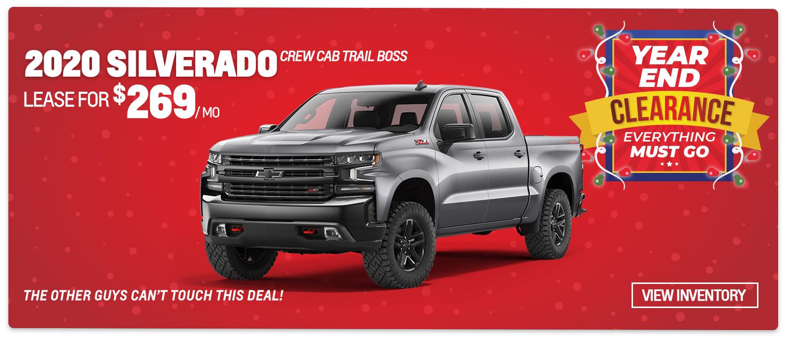 Are you in the market for a new vehicle? If so, browse our current lease offers on a variety of new Chevrolet vehicles. We offer a great selection of vehicles to choose from for a great price. View a range of new Chevrolet models including the Chevy Silverado, Chevy Equinox, Chevy Cruze and more. Not sure whether you should lease or buy? Get more information on available lease options by contacting our auto finance department. Click on the link below or contact our knowledgeable staff. We're more than happy to answer any questions you may have and help you find the best vehicle.