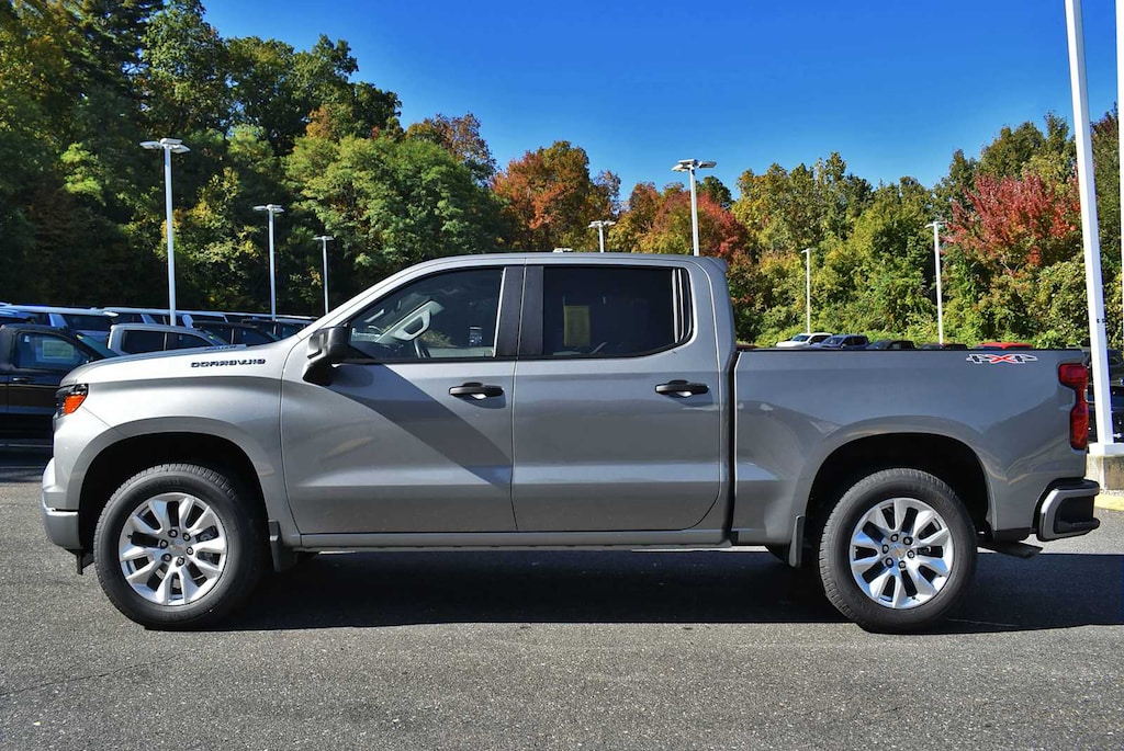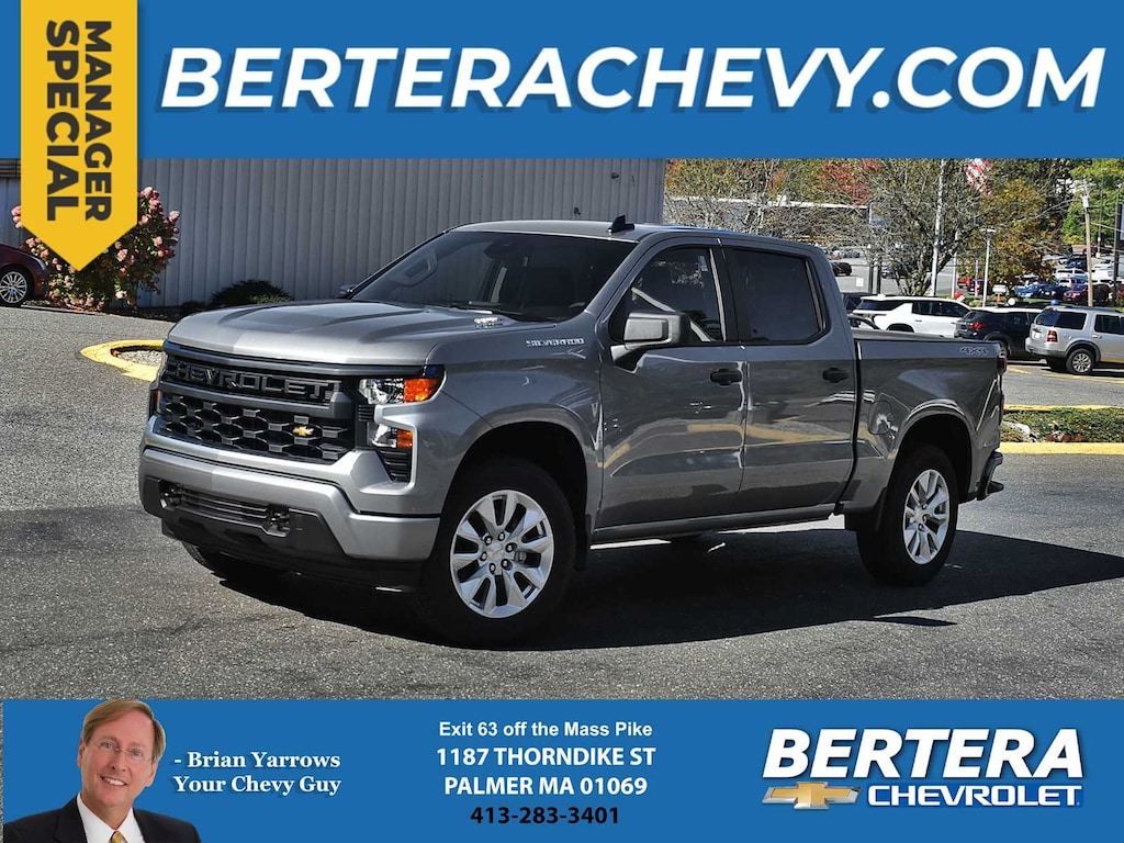 CHEVYTEC SPRAY-ON BEDLINER, BLACK (does not include spray-on liner on tailgate due to Black composite inner panel), AUDIO SYSTEM, CHEVROLET INFOTAINMENT 3 SYSTEM 7" diagonal HD color touchscreen, AM/FM stereo, Bluetooth® audio streaming for 2 active devices, voice command pass-through to phone, Wireless Apple CarPlay® and Wireless Android Auto® compatibility (STD), ENGINE, TURBOMAX (310 hp [231 kW] @ 5600 rpm, 430 lb-ft of torque [583 Nm] @ 3000 rpm) (STD), TRANSMISSION, 8-SPEED AUTOMATIC, ELECTRONICALLY CONTROLLED with overdrive and tow/haul mode. Includes Cruise Grade Braking and Powertrain Grade Braking (STD). Chevrolet Custom with Sterling Gray Metallic exterior and Jet Black interior features a 4 Cylinder Engine with 310 HP at 5600 RPM*. Manager Special