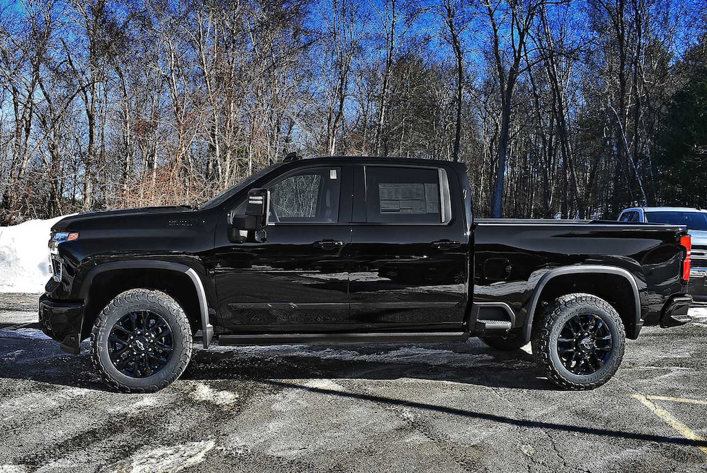 ENGINE, DURAMAX 6.6L TURBO-DIESEL V8 B20-Diesel compatible, (470 hp [350.5 kW] @ 2800 rpm, 975 lb-ft of torque [1322 Nm] @ 1600 rpm), MIDNIGHT EDITION includes Black grille bar with "Chevy Black Bowtie", Black grille inserts, Black skid plate, Black badging, Black bowtie on horn pad, (DP6) Gloss Black mirror caps, Black hood vent surround and LPO (B3L) Black power-retractable assist steps. Includes Black Metallic (Midnight Haze) Door Body Side Moldings, (D75) painted door handles, animated taillamps, (SRI) 20" High gloss Black painted wheels and (QFG) LT275/65R20 blackwall off-road tires, TECHNOLOGY PACKAGE includes (DRZ) Rear Camera Mirror and (UV6) Multicolor 15" Diagonal Head-Up Display, GOOSENECK/5TH WHEEL PREP PACKAGE Hitch platform to accept Gooseneck or 5th Wheel hitch. Includes hitch platform with tray to accept ball, stamped bed holes with removable caps installed and bed mounted 7-pin trailer harness (similar to UY2 harness). (Includes (CGN) Chevytec spray-on bedliner. AUDIO SYSTEM, CHEVROLET INFOTAINMENT 3 PREMIUM SYSTEM with Google built-in compatibility (select service plan required, terms and limitations apply) including navigation capability, 13.4" diagonal HD color touchscreen, includes multi-touch display, AM/FM stereo, Bluetooth® streaming audio for music and most phones; featuring Wireless Apple CarPlay® and Wireless Android Auto® capability for compatible phones, advanced voice recognition, in-vehicle apps, personalized profiles for infotainment and vehicle settings (STD), TRANSMISSION, 10-SPEED AUTOMATIC. Chevrolet High Country with Black exterior and Jet Black interior features a 8 Cylinder Engine with 470 HP at 2800 RPM*.
