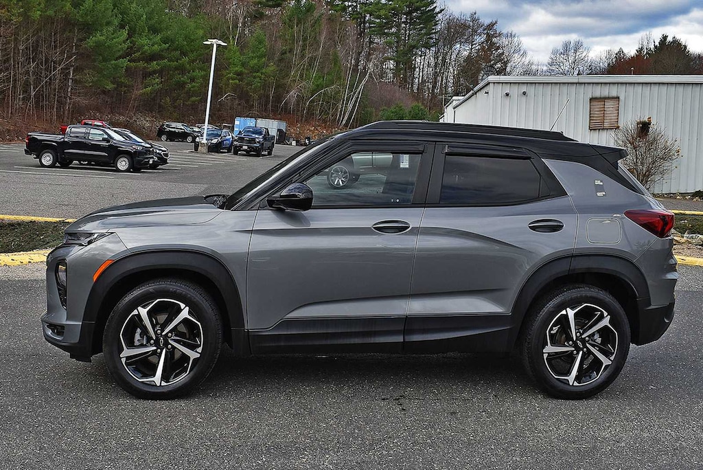 CONVENIENCE PACKAGE includes (C68) automatic climate control air conditioning, (UIJ) 8" diagonal color touchscreen display, (USS) one type-A and one type-C charging only USB ports, (KI6) 120-volt power outlet, (DD8) inside rearview auto-dimming mirror and (DMS) driver and front passenger illuminated vanity mirrors, covered, sliding visors, CONFIDENCE II PACKAGE includes (UD7) Rear Park Assist Beginning with start of production through November 28, 2022, vehicles will be forced to include (00Y) Not Equipped with Rear Park Assist, which removes Rear Park Assist. See dealer for details or the window label for the features on a specific vehicle. Beginning December 26, 2022, certain vehicles will be forced to include (060) Not Equipped with Rear Park Assist, which removes Rear Park Assist. Does not include later dealer retrofit. See dealer for details or the window label for the features on a specific vehicle.), AUDIO SYSTEM, CHEVROLET INFOTAINMENT 3 SYSTEM 7" diagonal color touchscreen, AM/FM stereo. Additional features for compatible phones include: Bluetooth® audio streaming for 2 active devices, voice command pass-through to phone, Apple CarPlay® and Android Auto® capable. (8" screen when (ZL3) Convenience Package and (ZL5) Driver Confidence Package are ordered.) (STD), ENGINE, ECOTEC 1.3L I3 TURBO DOHC SIDI WITH VARIABLE VALVE TIMING (VVT) (155 hp [115 kW] @ 5600 rpm, 174 lb-ft torque [236 N-m] @ 1600 rpm) (STD), TRANSMISSION, CONTINUOUSLY VARIABLE (CVT) (STD). Chevrolet RS with STERLING GRAY METALLIC exterior and JET BLACK W/ RED ACCENTS interior features a 3 Cylinder Engine with 155 HP at 5600 RPM*.