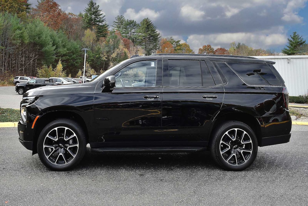 COMFORT PACKAGE includes (A45) memory settings, (UQS) Bose 10-speaker Surround with CenterPoint, (DXR) outside heated power-adjustable, power-folding, body-color mirrors with driver-side auto-dimming and integrated turn signal indicators, (KI3) heated steering wheel, (KA6) second row outboard heated seats, (ATT) second row power 60/40 split-folding bench seats, (AS8) third row power 60/40 split-folding bench seats, (TGE) LED animated headlamps and (TAU) LED animated tail lamps, SUNROOF, POWER PANORAMIC, DUAL-PANE, TILT-SLIDING with express-open and close and power sunshade, SEATS, SECOND ROW BUCKET, POWER RELEASE, ENGINE, 5.3L ECOTEC3 V8 with Dynamic Fuel Management, Direct Injection and Variable Valve Timing, includes aluminum block construction (355 hp [265 kW] @ 5600 rpm, 383 lb-ft of torque [518 Nm] @ 4100 rpm) (STD), TRANSMISSION, 10-SPEED AUTOMATIC electronically controlled with overdrive, includes Traction Select System including tow/haul (STD), AUDIO SYSTEM, 17.7" DIAGONAL ADVANCED COLOR LCD DISPLAY with Google built-in compatibility (select service plan required, terms and limitations apply), including navigation capability, connected apps, personalized profiles for each driver's settings, Natural Voice Recognition and Phone Integration (STD), SUSPENSION, PREMIUM SMOOTH RIDE (STD). Chevrolet RST with Black exterior and Jet Black/Victory Red interior features a 8 Cylinder Engine with 355 HP at 5600 RPM*.