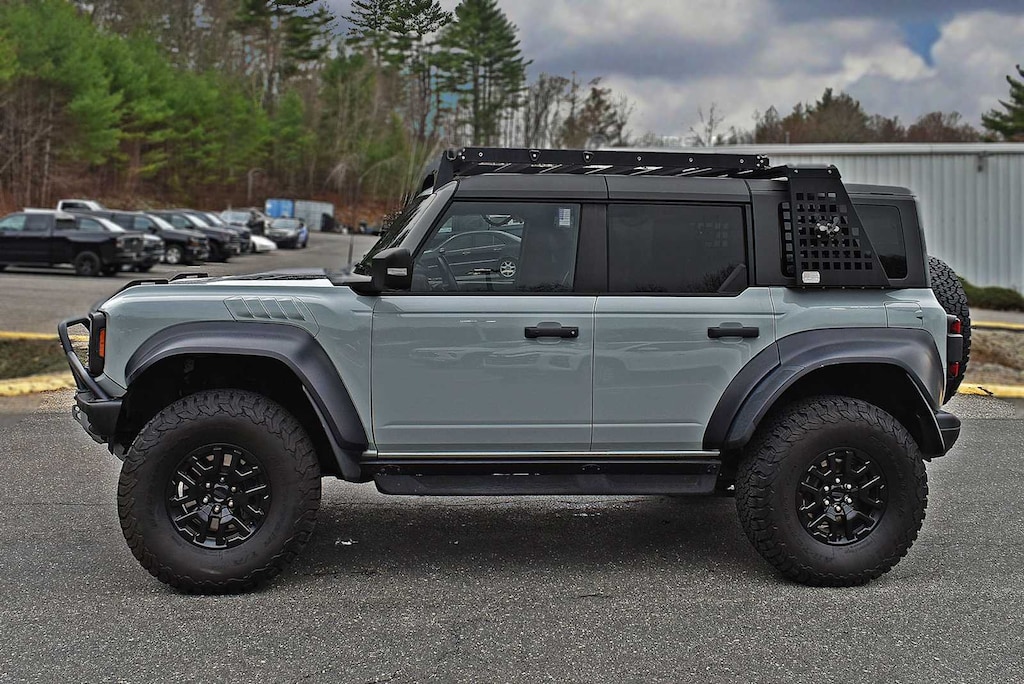 BLUE W/BLACK ONYX, LEATHER-TRIMMED/VINYL BUCKET SEATS W/BLUE/BLACK 10-way power driver seat, 8-way front passenger seat, second row armrest w/2 beverage holders and front driver/passenger seat back MOLLE strap system, Carpet flooring replaces the standard rubberized flooring, EQUIPMENT GROUP 374A LUX PACKAGE Lux Package, 2 Smart Charging USB Ports In Dashboard, 1 A and 1 C, Evasive Steering Assist, Heated Steering Wheel, Adaptive Cruise Control, Universal Garage Door Opener, Wireless Charging Pad, Radio: B&O Sound System by Bang & Olufsen, 10 speakers including subwoofer, Connected Built-In Navigation, 3 years of service, pinch-to-zoom capability, live traffic, predictive destinations and route guidance, Navigation services require SYNC4 and FordPass Connect (optional on select vehicles), complimentary connect service and the FordPass app (see FordPass terms for details), Customer receives a complimentary 3-year trial of navigation services when an eligible vehicle is added to a member's FordPass account, Trial period begins w/new vehicle warranty start date, TRANSMISSION: 10-SPEED AUTOMATIC trail control, trail turn assist and trail one-pedal driving (STD), ENGINE: 3.0L ECOBOOST V6 electric brake boost (STD). Ford Raptor with Cactus Gray exterior and Blue w/ Black Onyx interior features a V6 Cylinder Engine with 418 HP at 5750 RPM*.